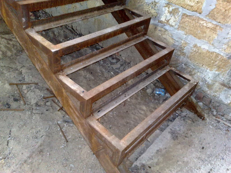 - Используйте швеллер 8х10 см для каркаса и листовую сталь для ступеней.