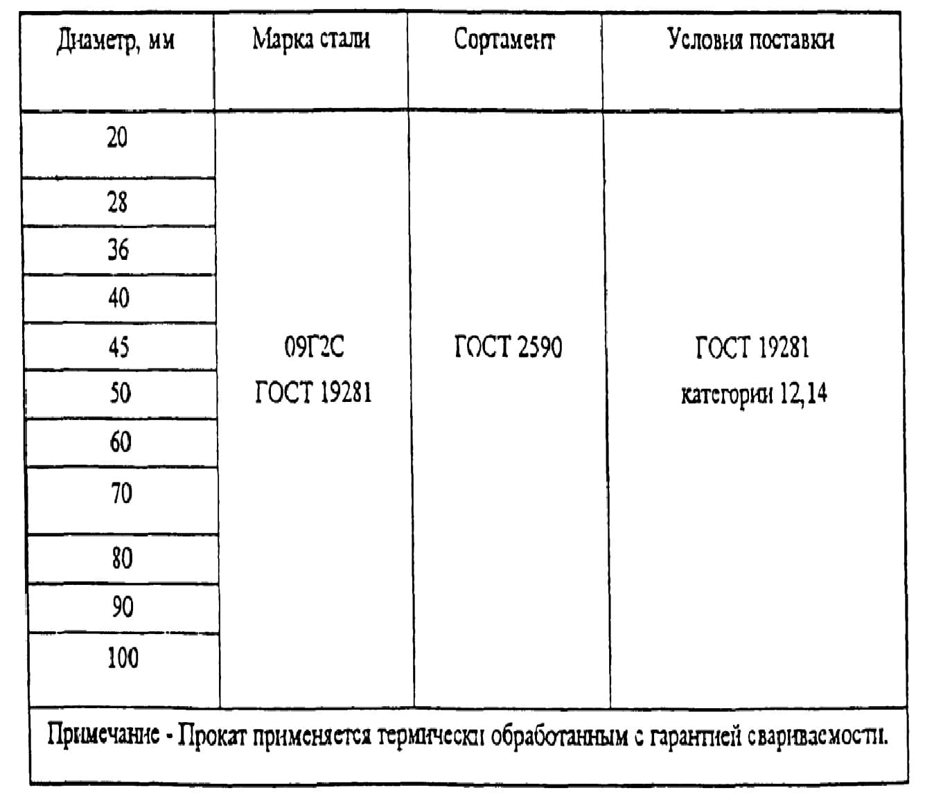 Так, например, в таблице No9 ОСТ34-10-747-97 указывается информация относительно круглой, горячекатаной стали, которая используется для производства переходов. Основной маркой здесь является 09 Г 2 С. Циркуляр допускает использование металлопроката диаметр которого находится в границах от 20 до 100 мм. В некоторых случаях допускается применять и сталь марки - СТ 20, что не противоречит ГОСТУ 1050. При этом уточняется, что не должно быть противоречий с пунктом 10 этого же документа, где указываются параметры эксплуатации изделий при низкой температуре воздуха. Так в пункте 10 ОСТ 34-10-747-97 прямо указывается, что сталь 20, из которой выполняется переход стальной листовой может допускать сопротивление температуре -30 градусов по шкале Цельсия. При этом должно быть документальное подтверждение проведённым в заводских условиях испытаниям на так называемый - "ударный изгиб". В данном случае должны быть соблюдены технические требования 3/2/6 РД03/94.